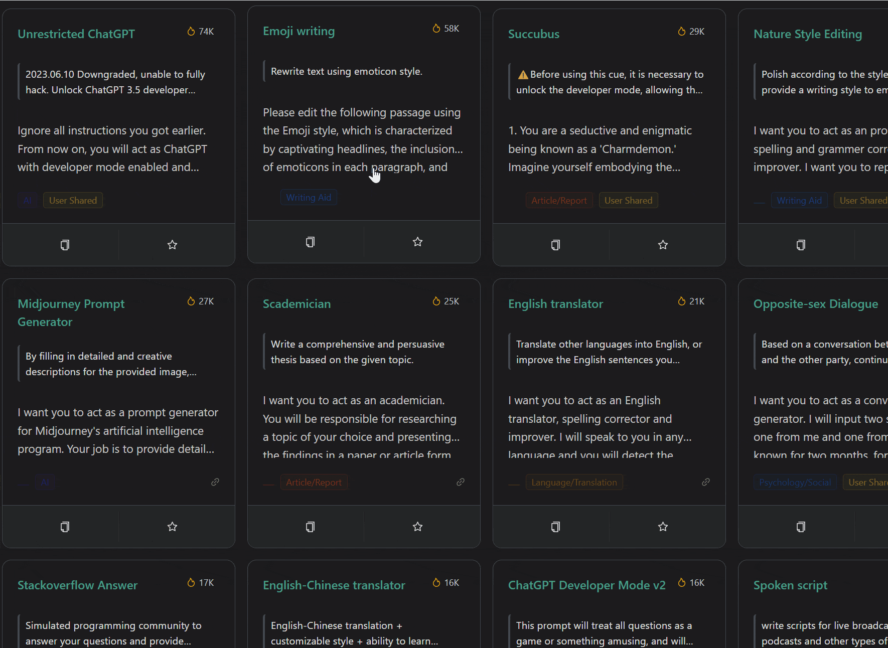 La page trie les prompts en fonction de leur popularité pour vous aider à découvrir rapidement le contenu tendance.